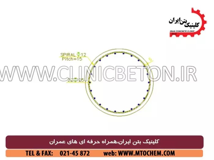 ستونی با مقطع دایروی با 22 میلگرد نمره 25 با میلگردهای عرضی نمره 12 با فواصل 15