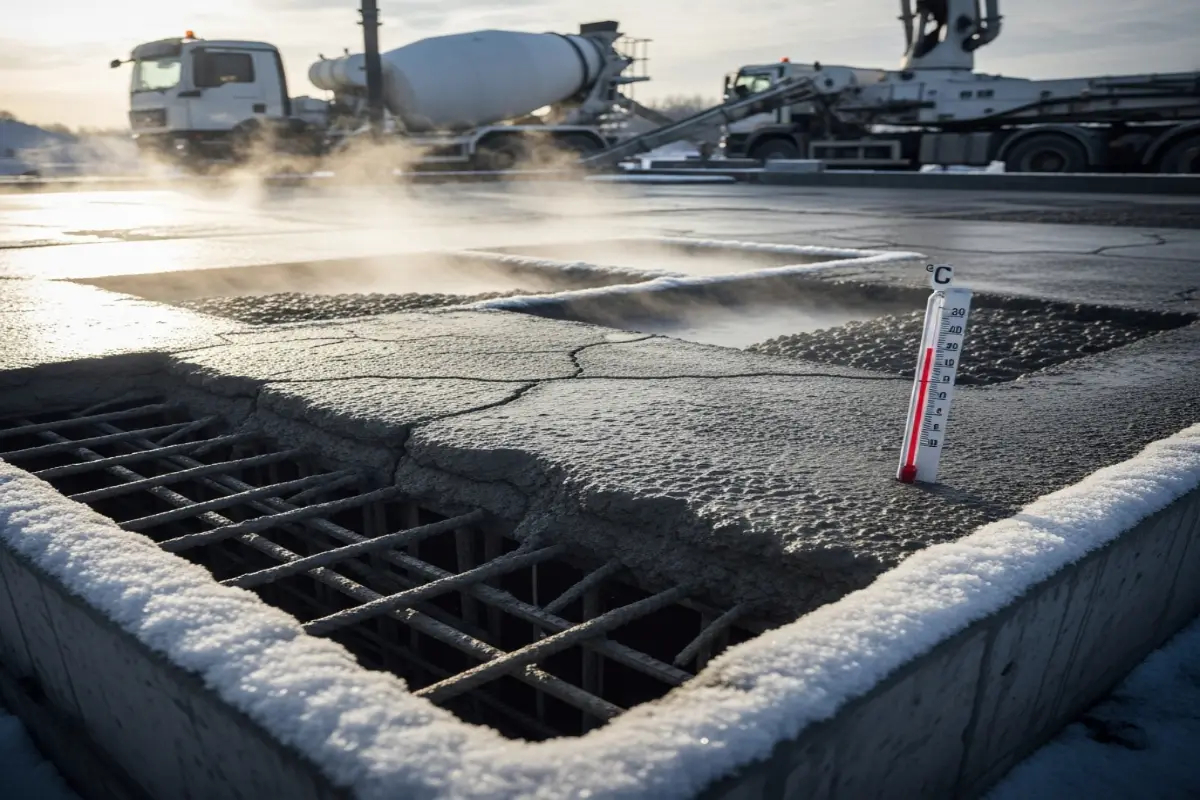 مهم ترین خطر در بتن ریزی زمستانی،یخ زدن آب در حفرات مویین بتن در سنین اولیه است؛ یعنی قبل از اینکه بتن بتواند حداقل مقاومت لازم برای مقاومت در برابر فشار انبساط یخ را کسب کند (معمولاً مقاومت فشاری حدود ۳.۵ مگاپاسکال).