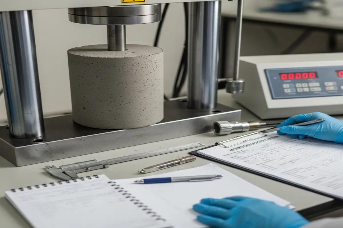 آزمایش مقاومت فشاری، قلب فرآیند کنترل کیفیت است و بر اساس استاندارد ASTM C39 انجام می گیرد.