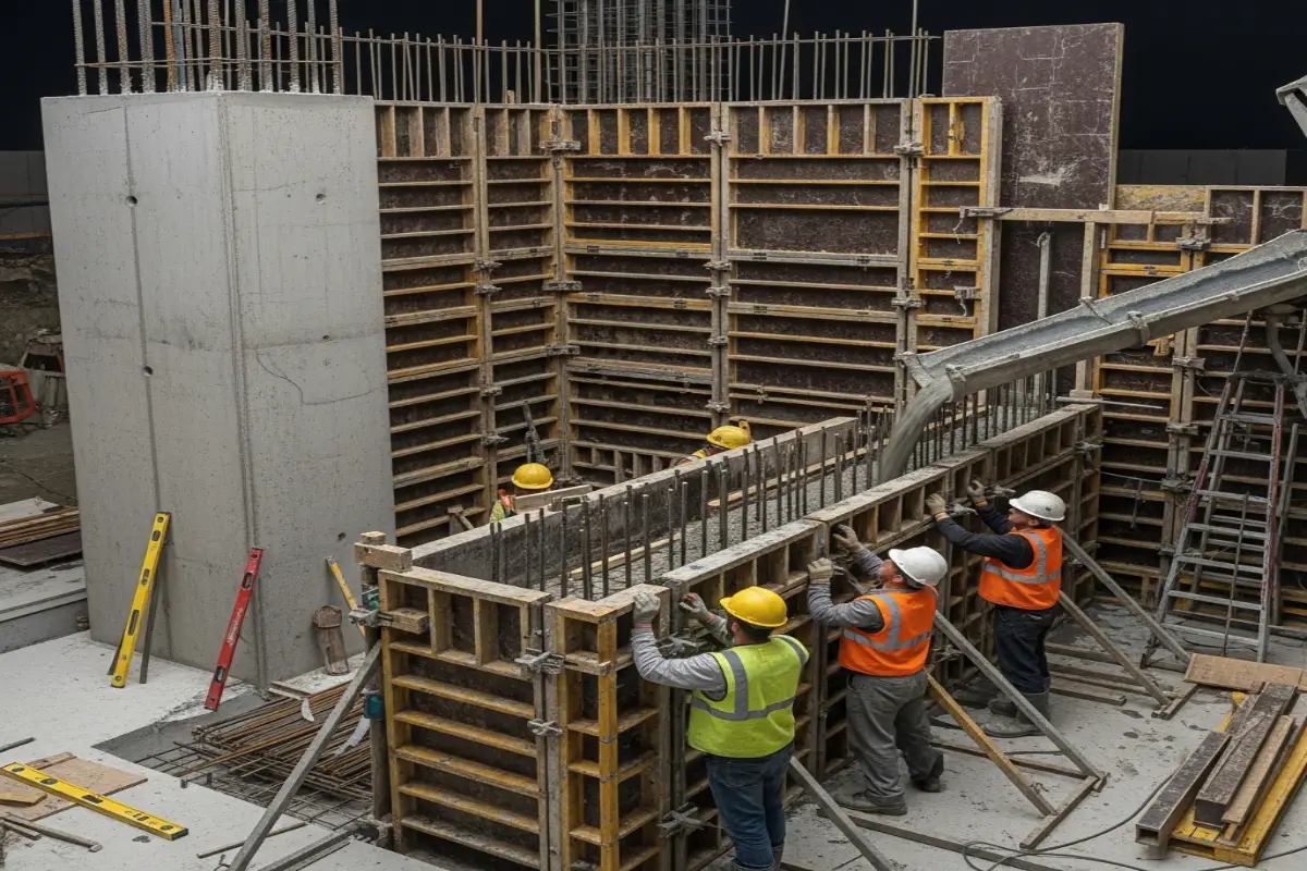 - سرعت کنترل شده: سرعت بتن ریزی (ارتفاع ریخته شده در هر ساعت) باید متناسب با فشار مجاز قالب و ظرفیت ویبراتورها باشد.