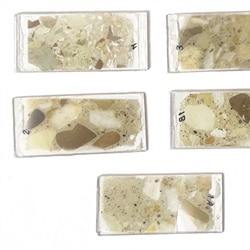 کلیست شدن دور سنگدانه ها در اثر حملات سولفاتی یا واکنش قلیایی سنگدانه ها، افزایش حجم حباب های هوای محبوس در مخلوط بتن، امکان بررسی انرژی شکست حاصل از ریز ترک ها، شکفتگی آهک در خمیر سیمان هیدراته از نتایج بررسی لام های برش بتن در زیر میکروسکوپ های نوری و الکترونی است.